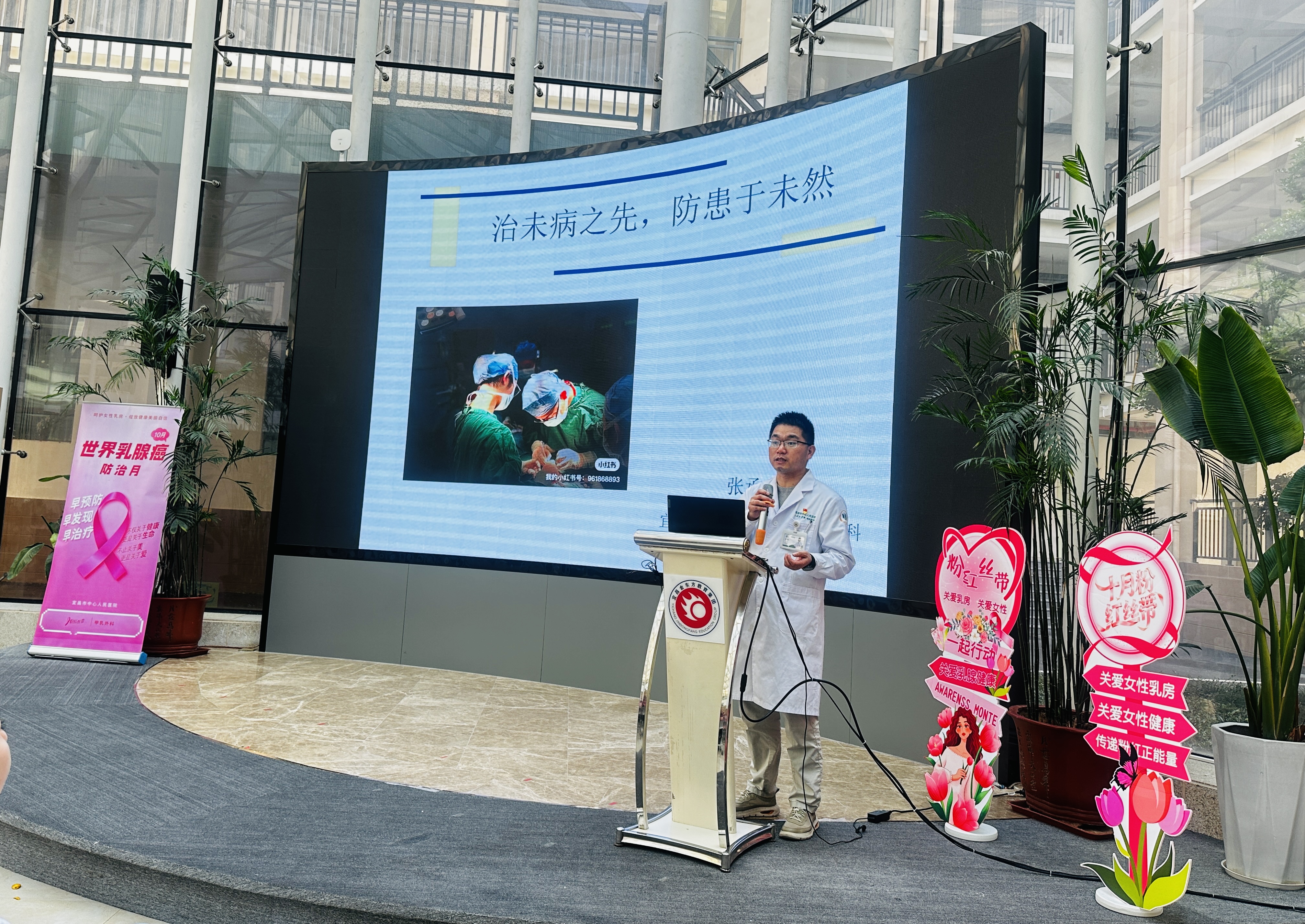 活动中,医学博士张承武以 “乳腺疾病知己知彼,防患于未然” 为题,结合案例,用通俗易懂的语言系统讲解了乳腺疾病的常见类型、预防措施及治疗方法。他重点强调,“早发现、早诊断、早治疗” 是应对乳腺癌的关键,提醒教职工关注身体异常信号,定期进行乳腺自查与专业检查。张博士还特别指出,当前乳腺癌发病呈年轻化趋势,需引起全社会的高度重视和积极防范。
