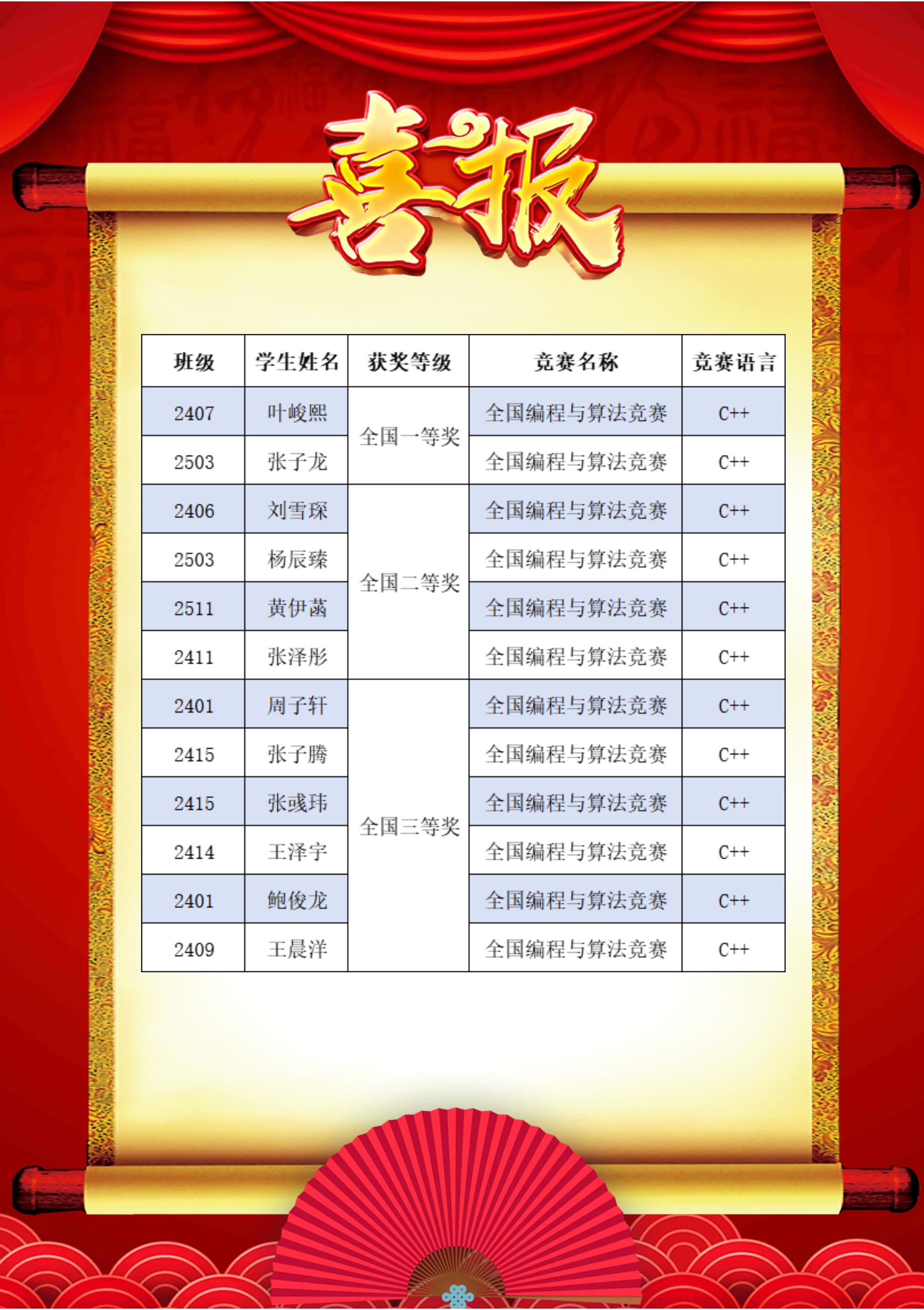 近日,2025年全国编程与算法竞赛成绩揭晓,西陵金初多名学生表现优异,斩获国家级奖项。